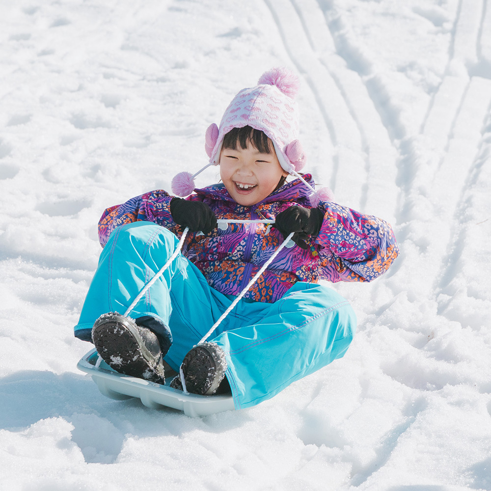 "Snow Kids Park" has been newly opened with a snowy field that spreads behind the hotel. It is a vast snow play area of about 4,000 m2 where children can move around at ease. You can rent out items such as snowball making machines, scoops, buckets, sleds for free, so you can play with snow immediately after arrival without having to bring playground equipment or tools. You can enjoy yourself, such as making snowballs and fighting snowballs, making snow objects and mini kamakuras using scoops and buckets, and sliding down the slopes with sleds.