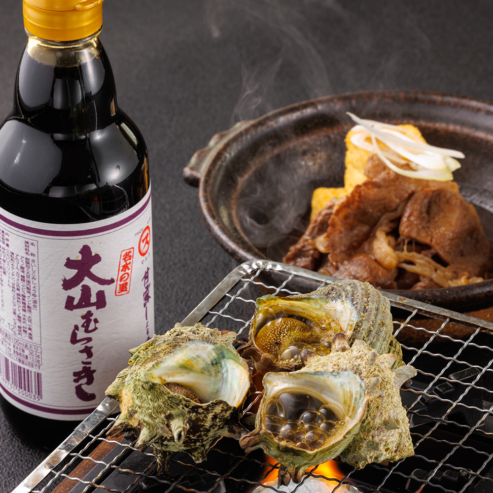 와규의 맛과 두부, 사자에의 맛을 현지 간장 「오야마 무라사키」를 사용해 꺼낸 메뉴를 즐겨 주세요