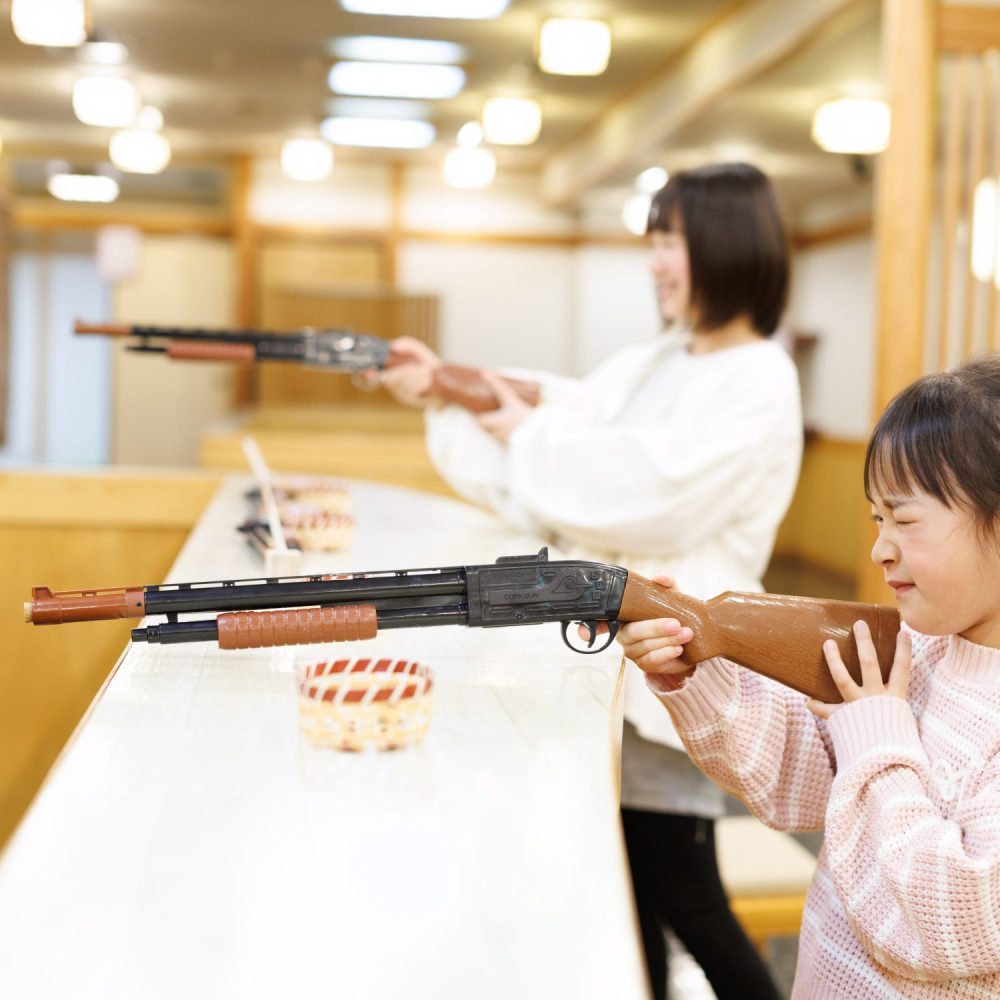 室内では射的などなつかしい遊びをご用意しており、雨の日でも安心してお楽しみいただけます。