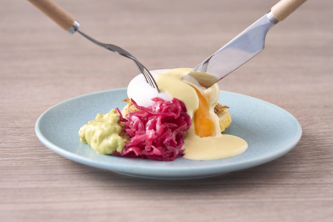 マルシェの屋台で大きな鍋からサーブされるような、じっくり煮込まれ深い旨みが感じられ、ほろりとほどける柔らかさのプルドポーク。仕上げにポーチドエッグを乗せ、チーズソースをかけて提供します。お好みで、ワカモレディップやレッドキャベツとビーツのラペを加え、味の変化をお楽しみいただけます。